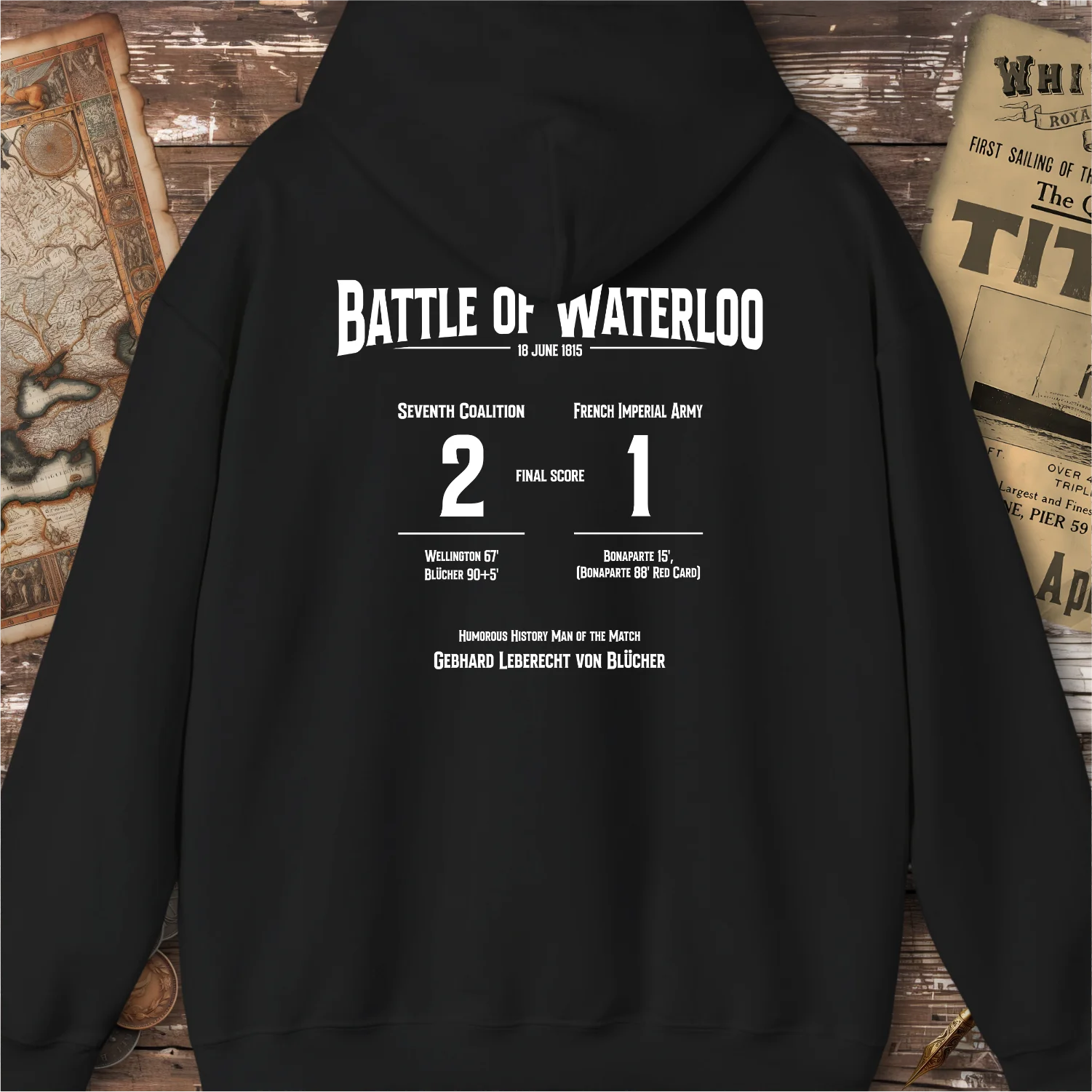 History meets sports-style satire with this brilliantly clever “Battle of Waterloo” Hoodie. Designed like a modern match report, it reimagines the decisive 1815 battle as a final scoreline: Seventh Coalition 2, French Imperial Army 1. Complete with “goals,” stoppage time, and a tongue-in-cheek red card for Napoleon, this Hoodie turns one of Europe’s most famous battles into a scoreboard classic.