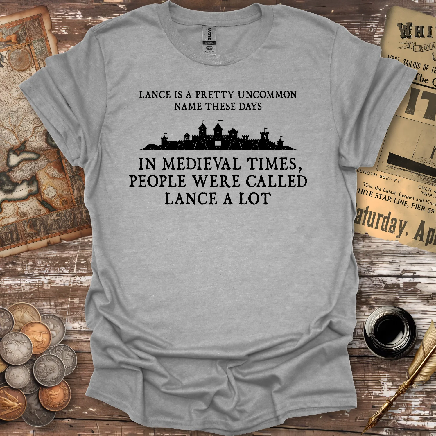 Clever, nerdy, and gloriously medieval, this “Lance is a pretty uncommon name these days… In medieval times, people were called Lance a lot” t-shirt is a perfect example of historical humour. Featuring a subtle castle silhouette and crisp typography, the joke sneaks up on you—then lands with knightly precision.